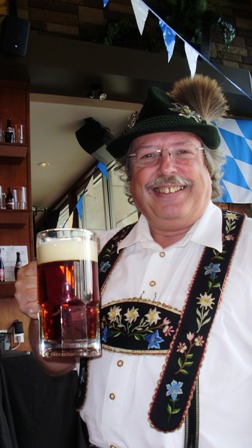 Scenario 4 ~ A 50th birthday party is thrown by relatives and they decide to surprise the birthday boy with a very unique gift. The singing telegram would be delivered by the performer (Peter) dressed up in a traditional german lederhosen (leather pants with suspenders) and bavarian hat. He would sing happy birthday and some famous drinking songs and give the exciting Ein Prosit Chant " Ziky Zaky, Ziky Zaky, Hoi Hoi Hoi" wishing the birthday boy and guests all the best, proposing a toast of beer to a long life.